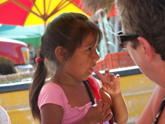 This sweet little gal was helping her mother sell necklaces and ankle bracelets to tourists on the beach.